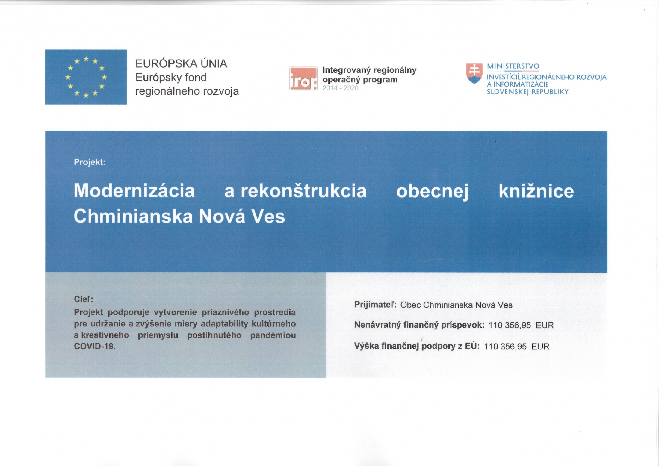 Modernizácia a rekonštrukcia obecnej knižnice Chminianska Nová Ves